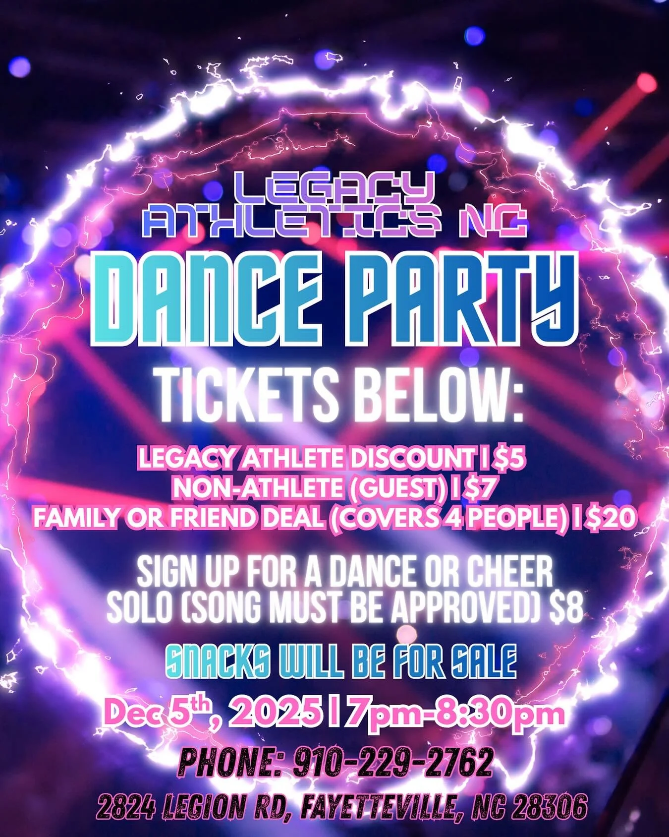At Legacy Athletics NC, we are not just a second gym but we are a home and we want to welcome you! we are very passionate about All Star Cheer and Dance, but watching these athletes grow and teaching them life lessons they will forever hold with them we are very thankful for the opportunities you allow us and the rest of our staff to contribute to the personal growth and development of your athlete. When you become a member of Legacy Athletics NC, you become a part of a family. And we canβt wait to have you join our All Star Cheer or Dance Teams!